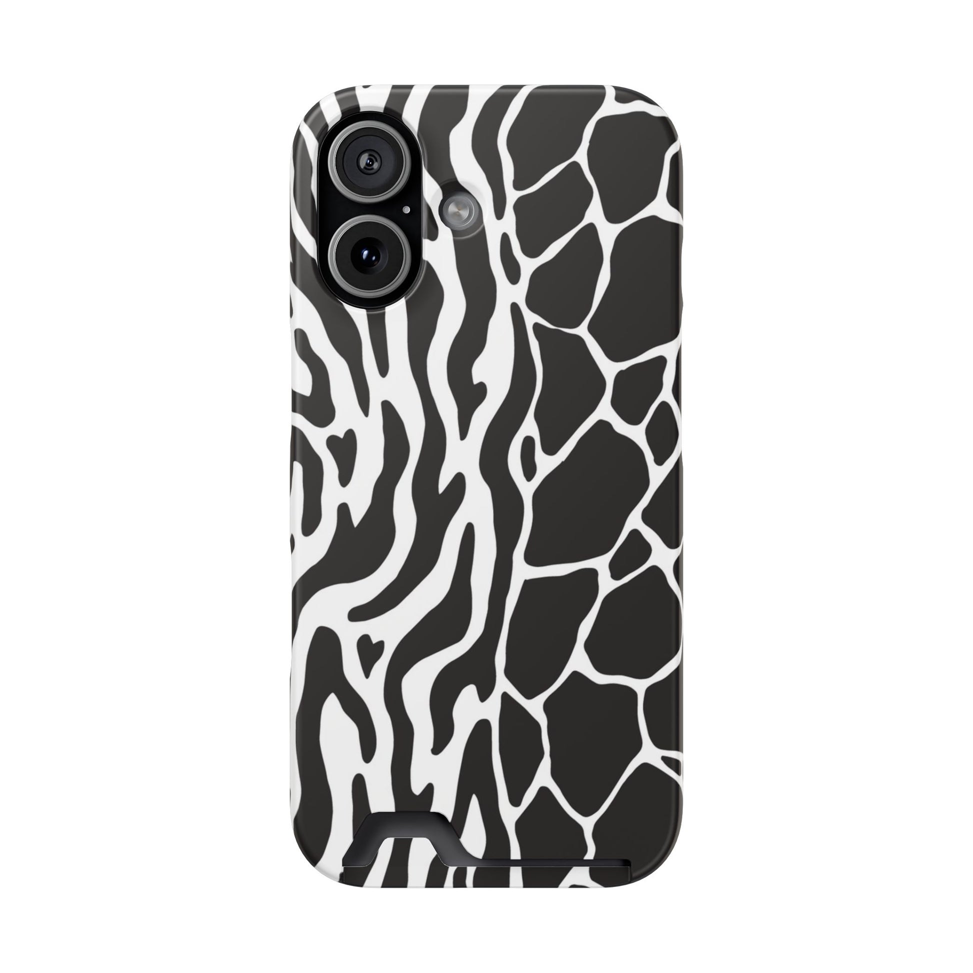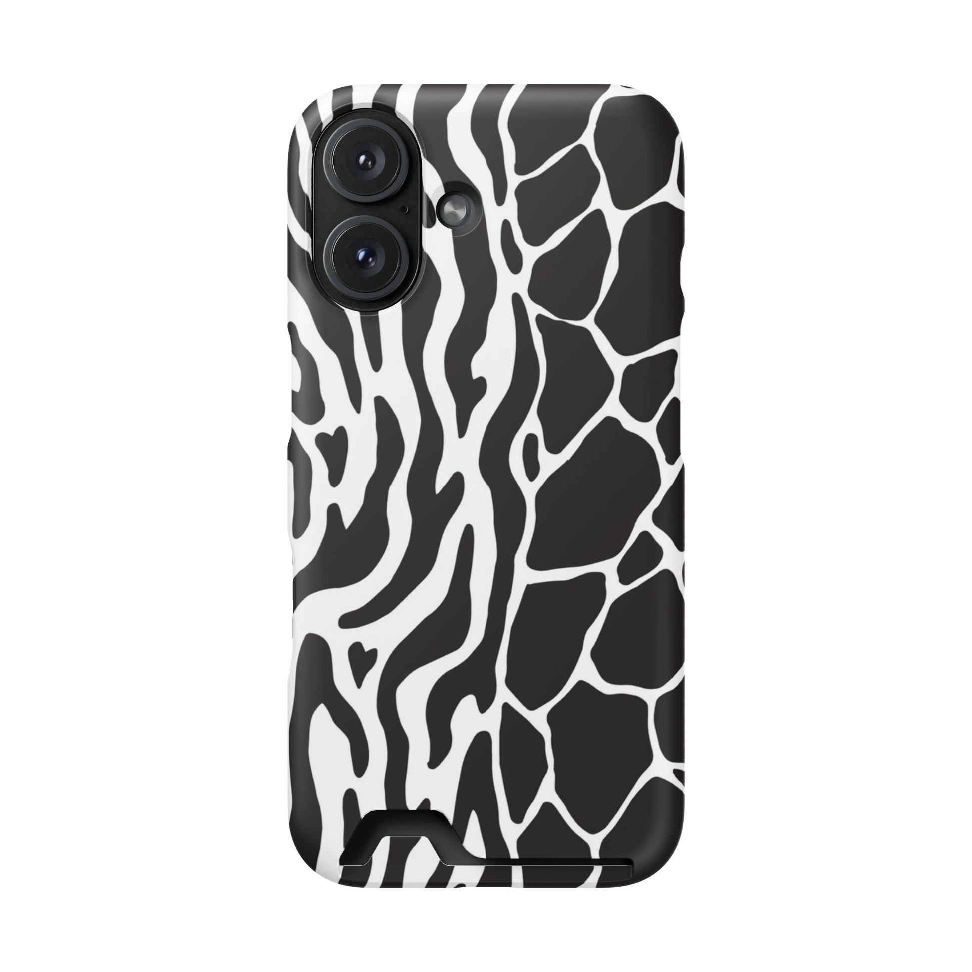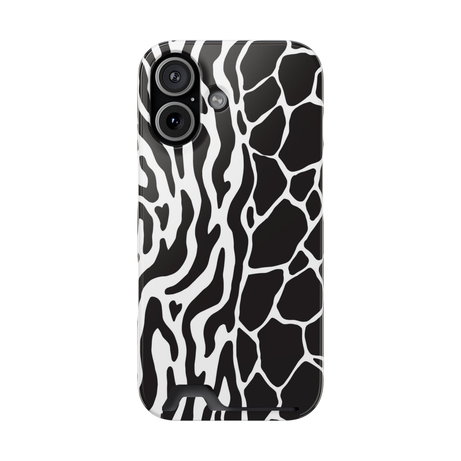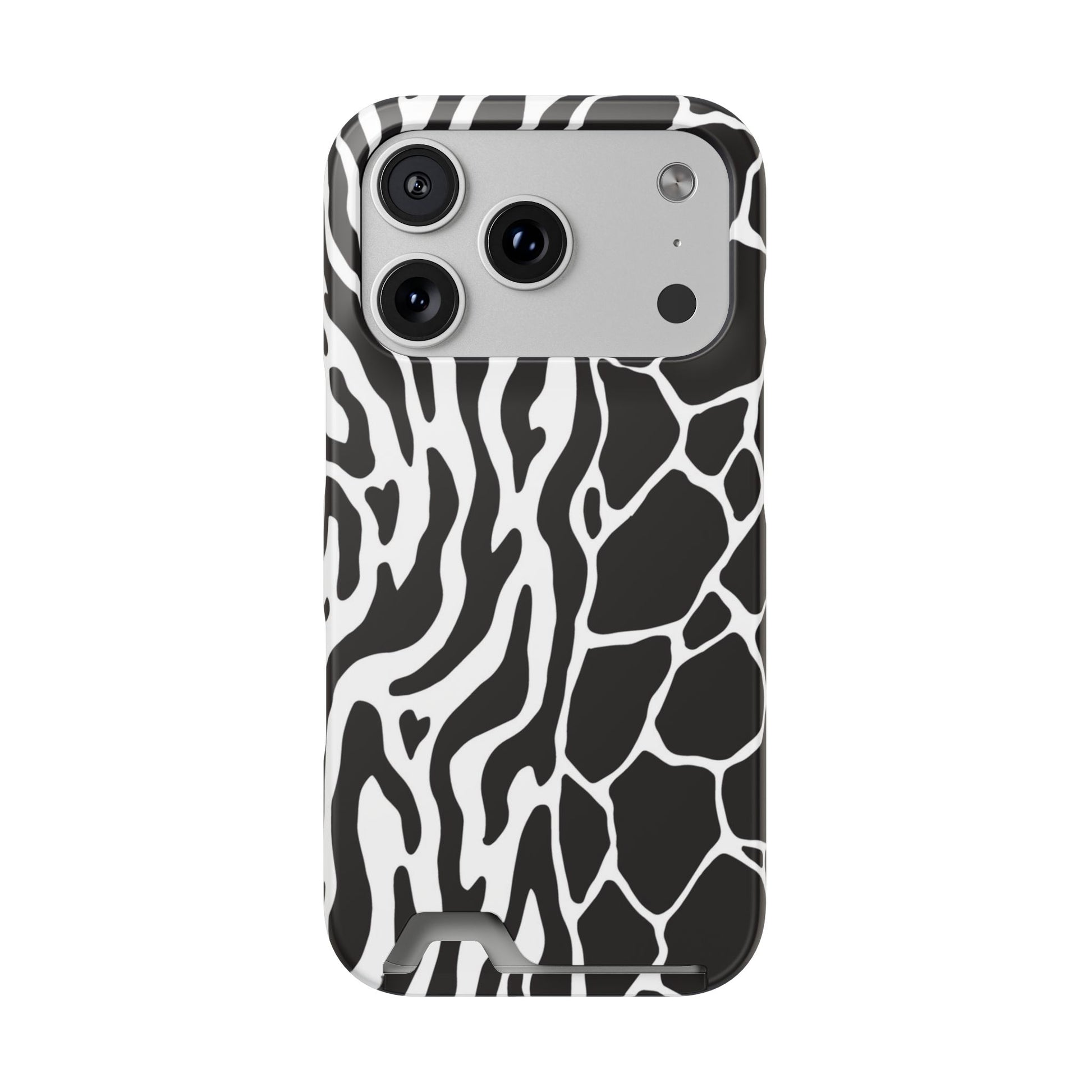 This sleek luxury case combines bold black-and-white animal print with refined minimalism for an instantly elevated look.
