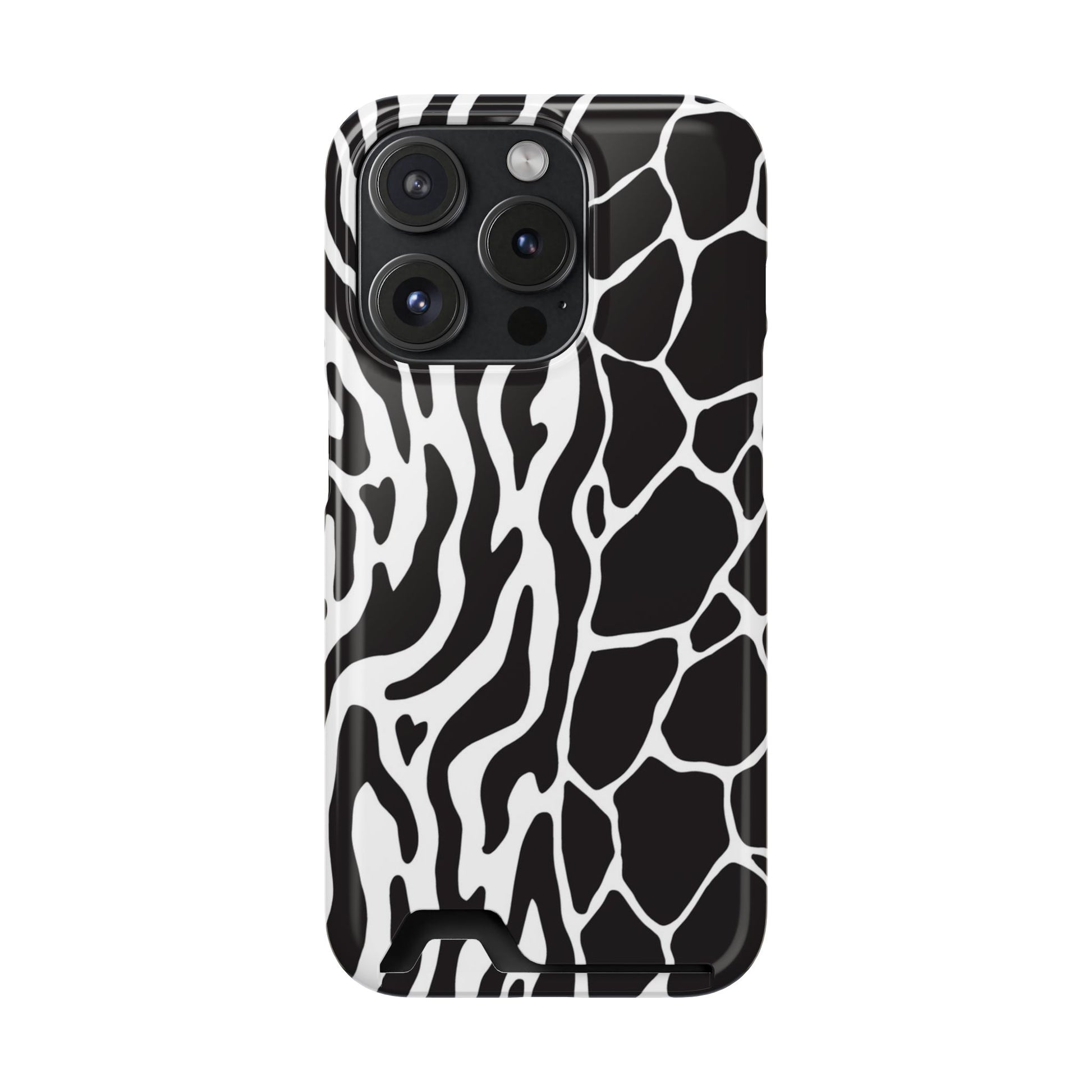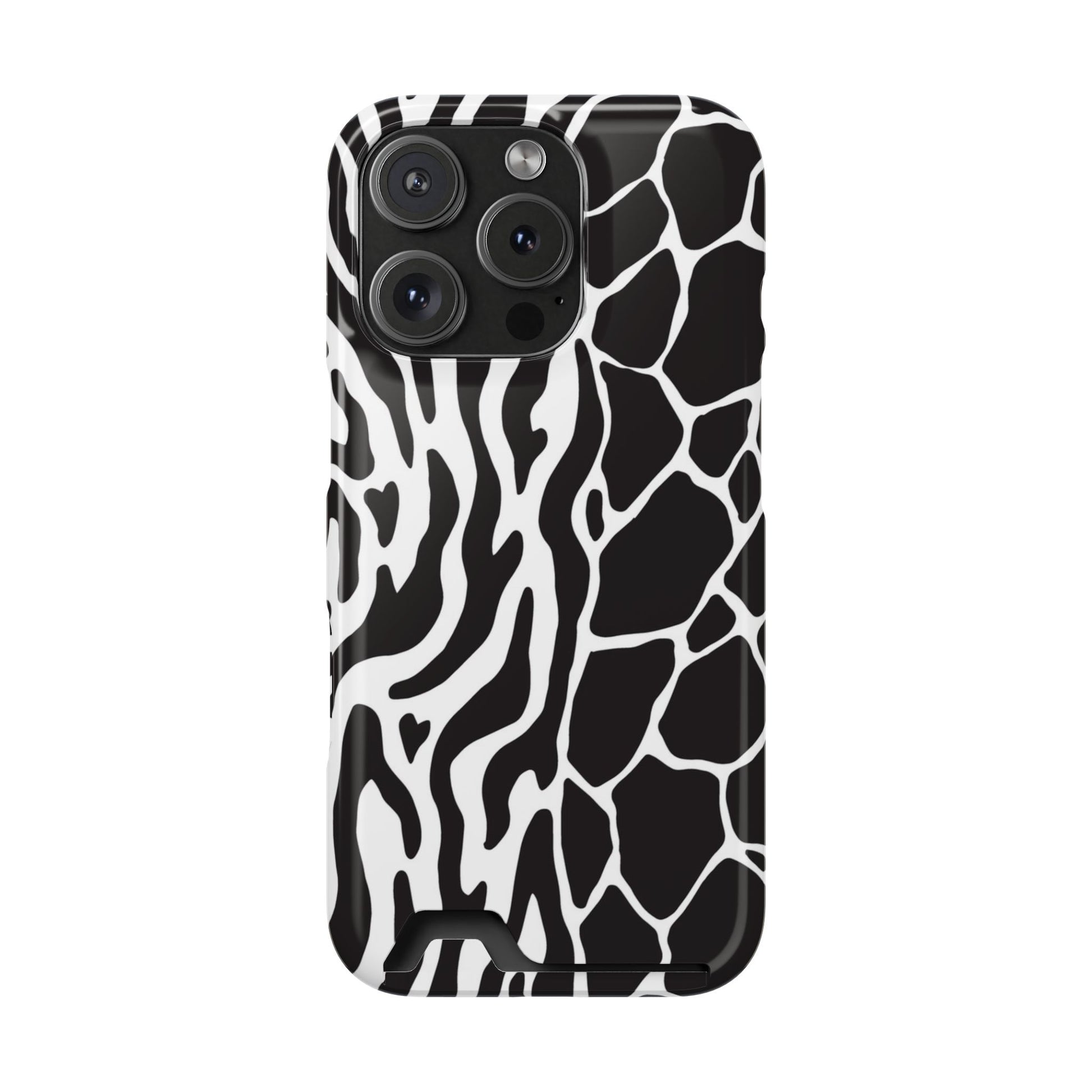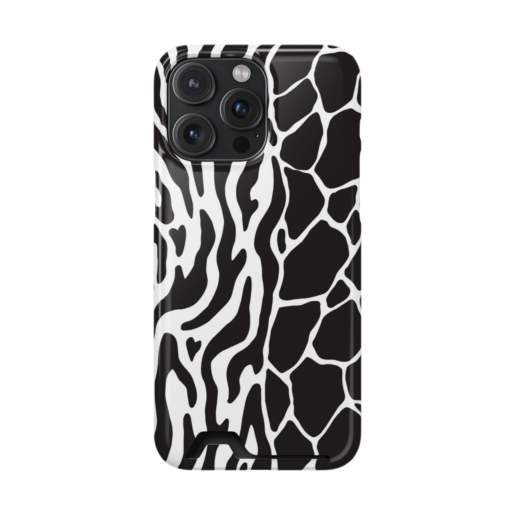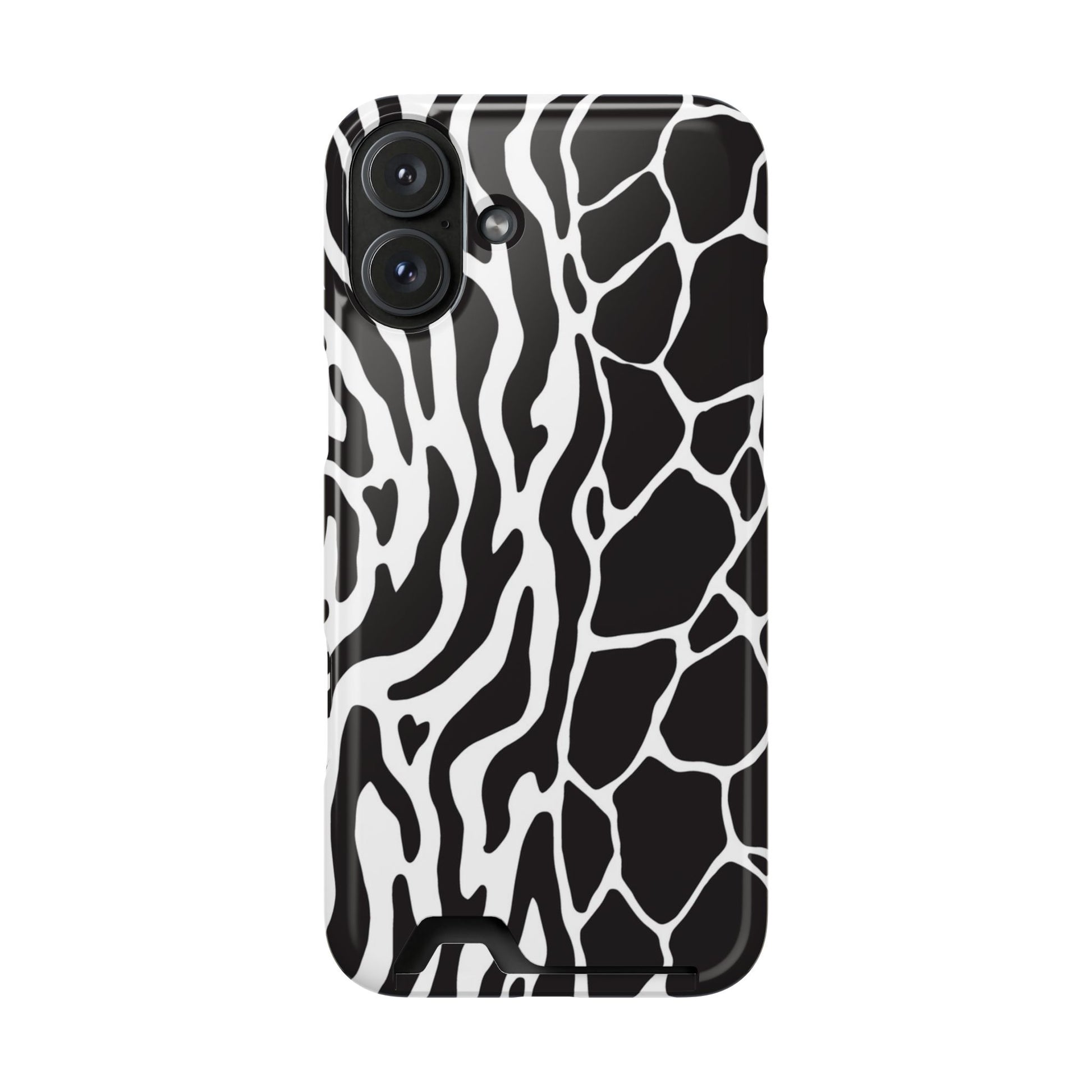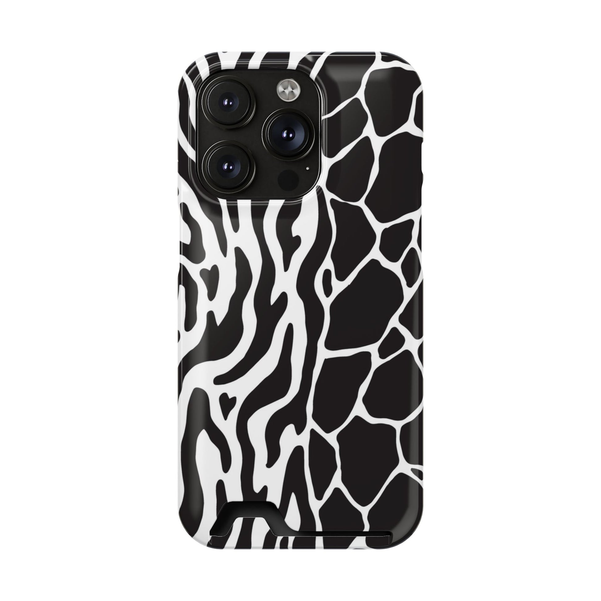 This sleek luxury case combines bold black-and-white animal print with refined minimalism for an instantly elevated look.