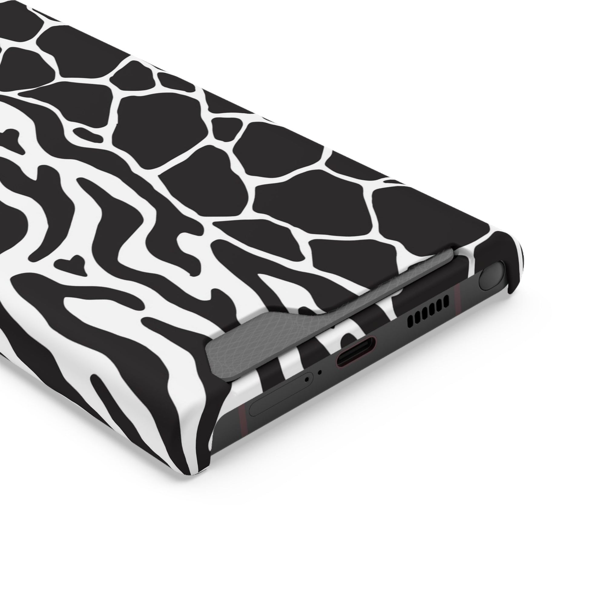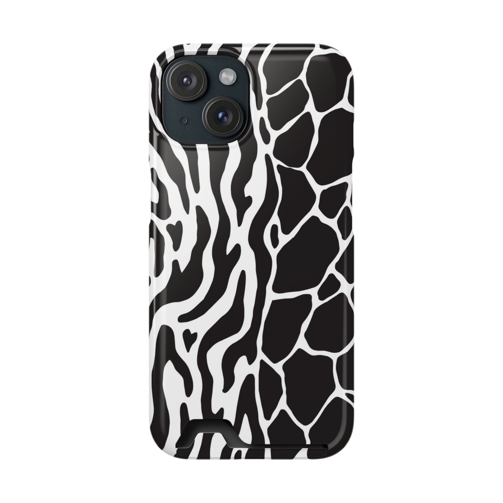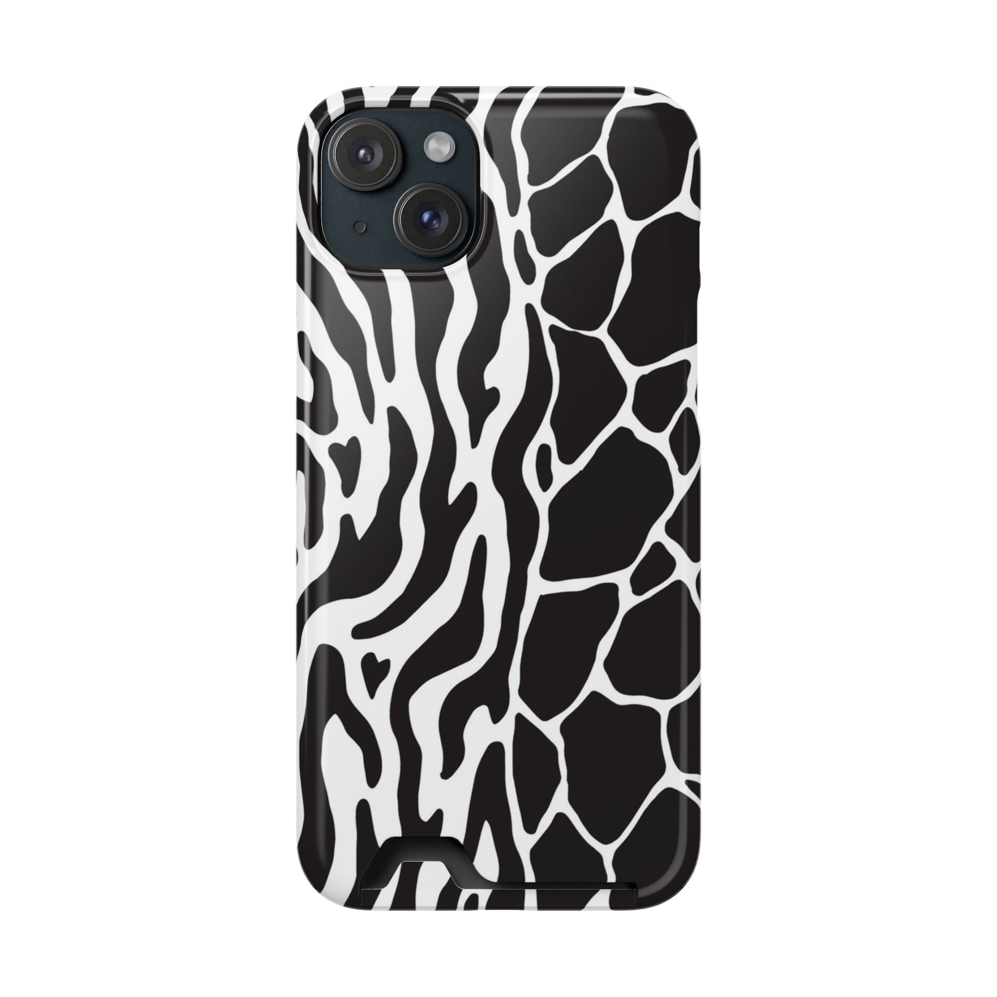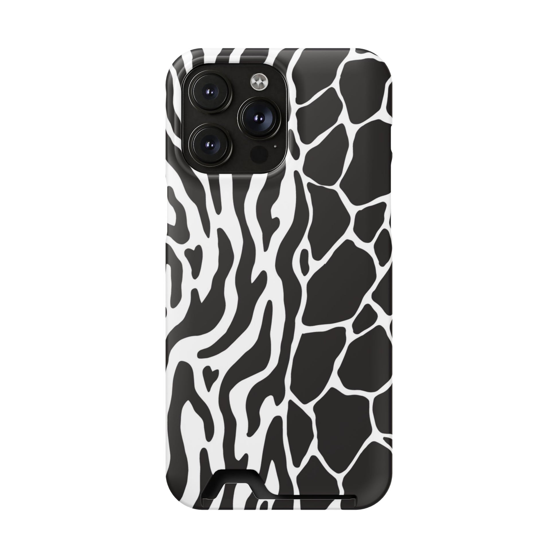 This sleek luxury case combines bold black-and-white animal print with refined minimalism for an instantly elevated look.