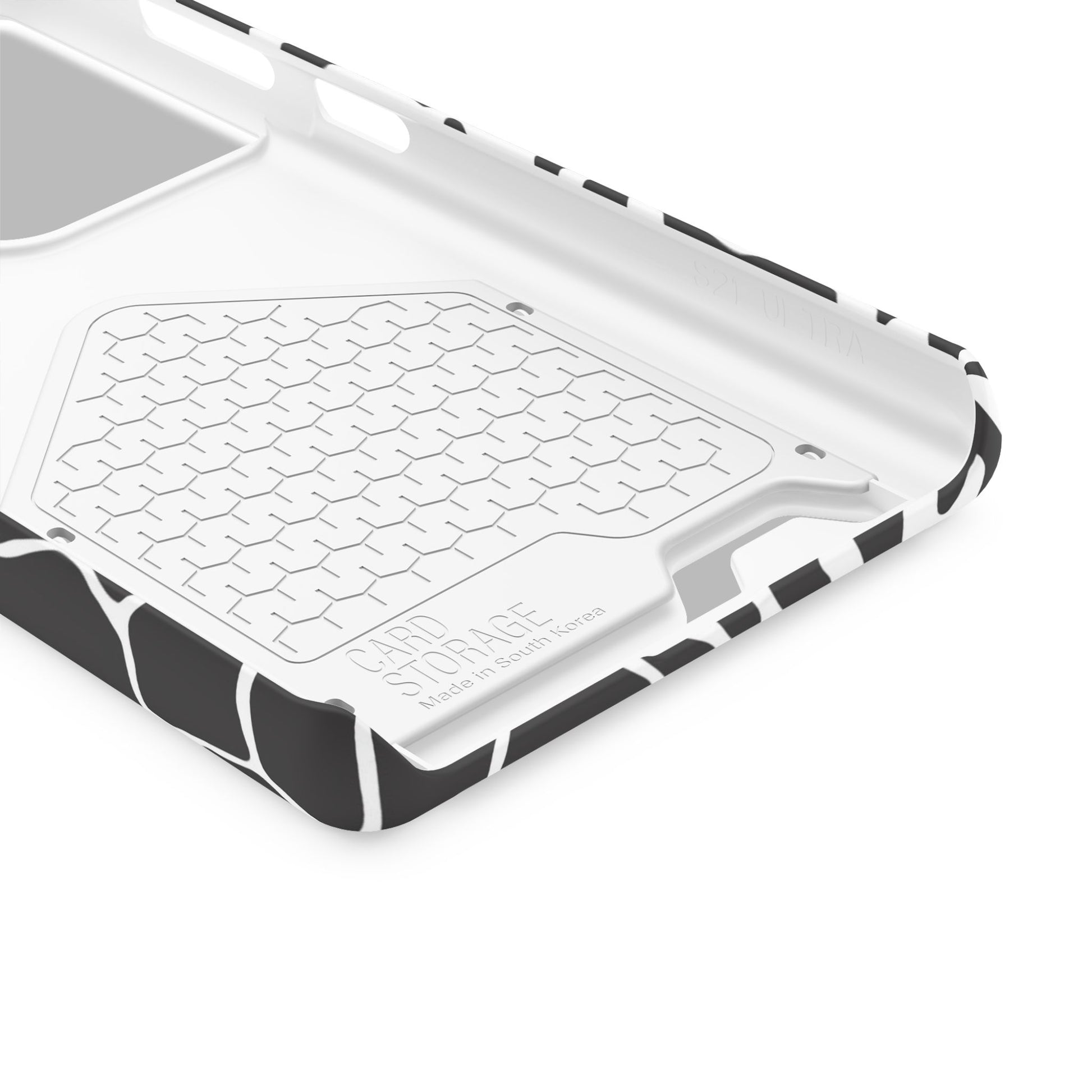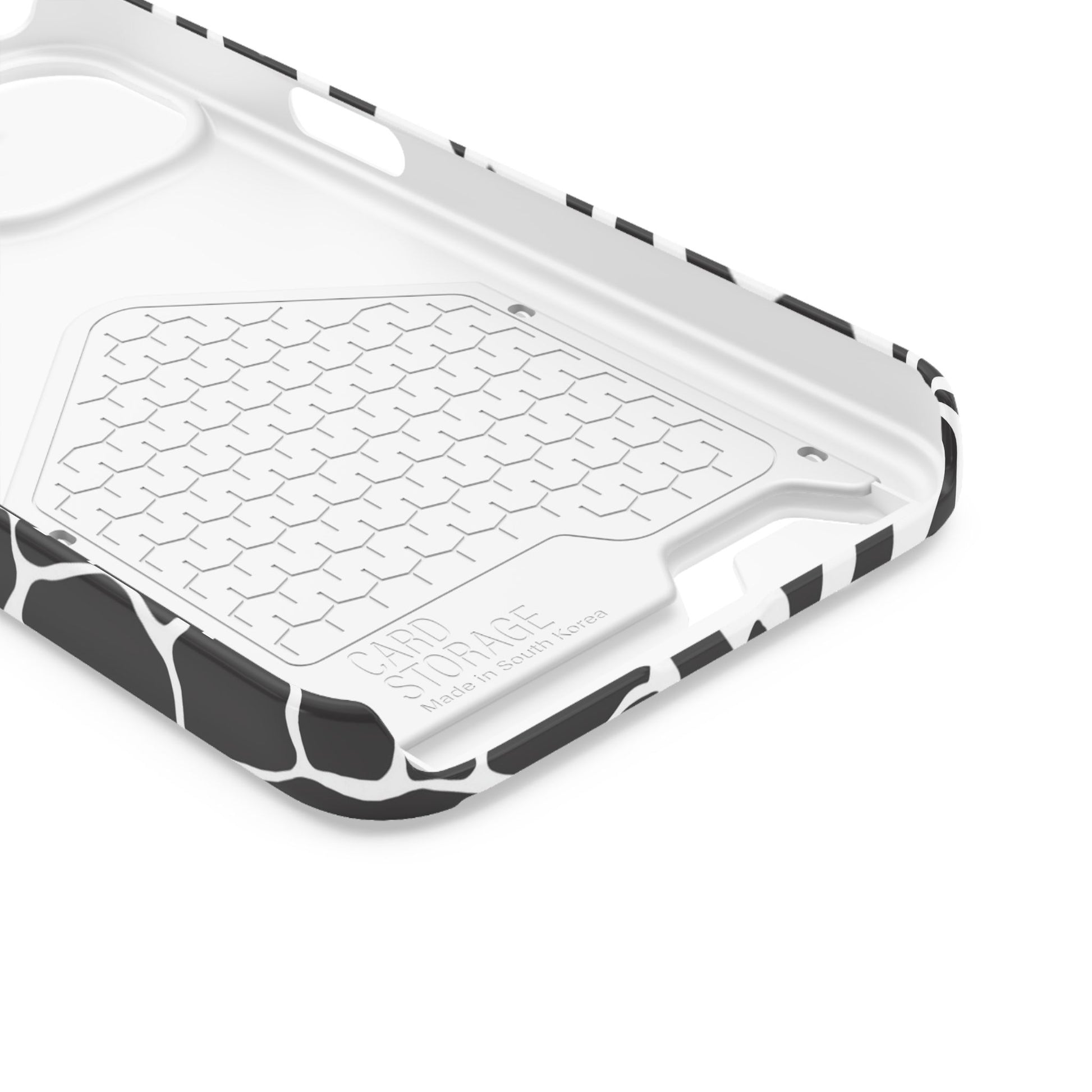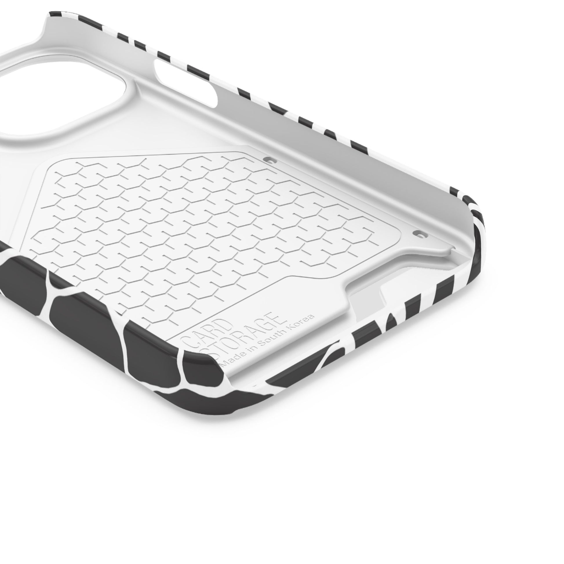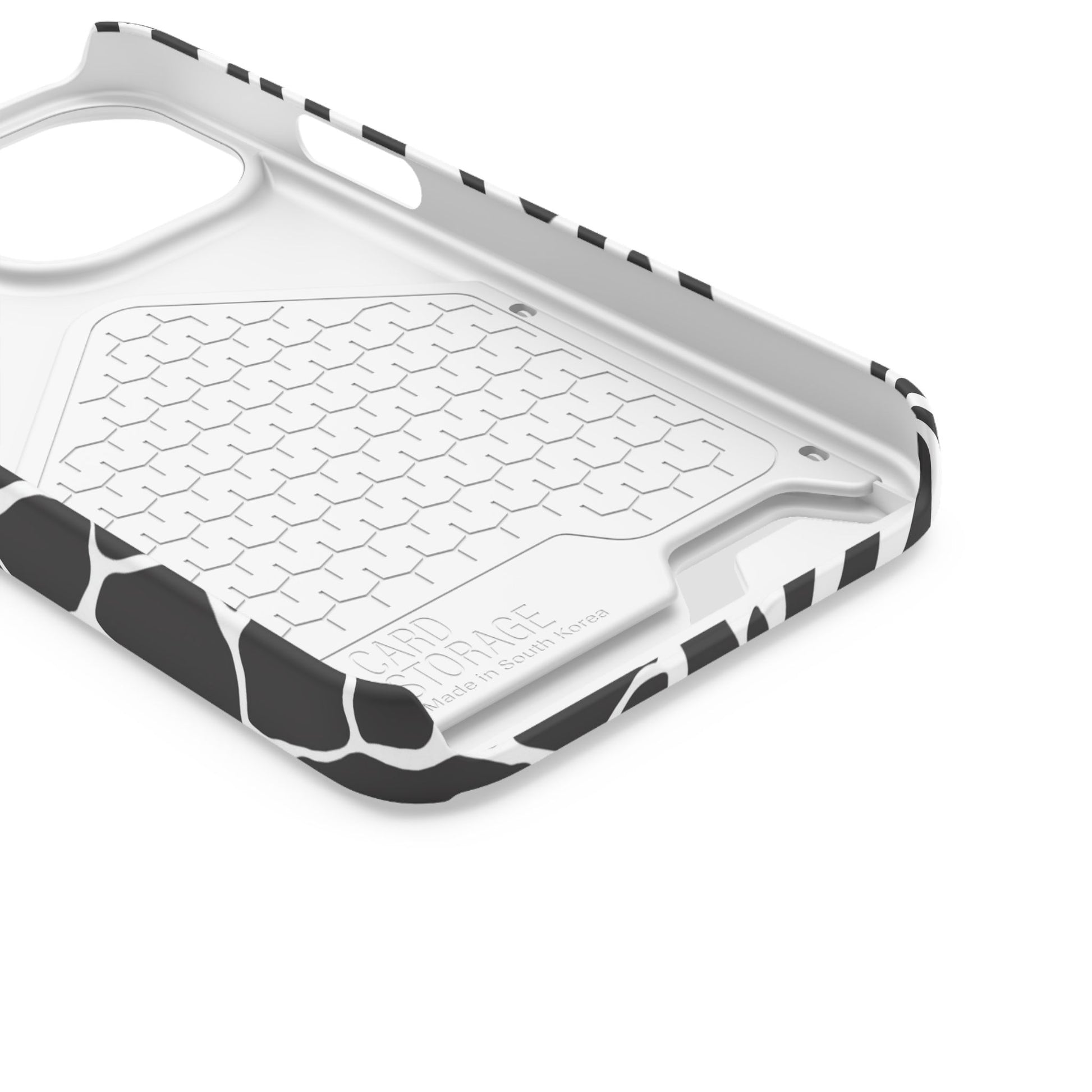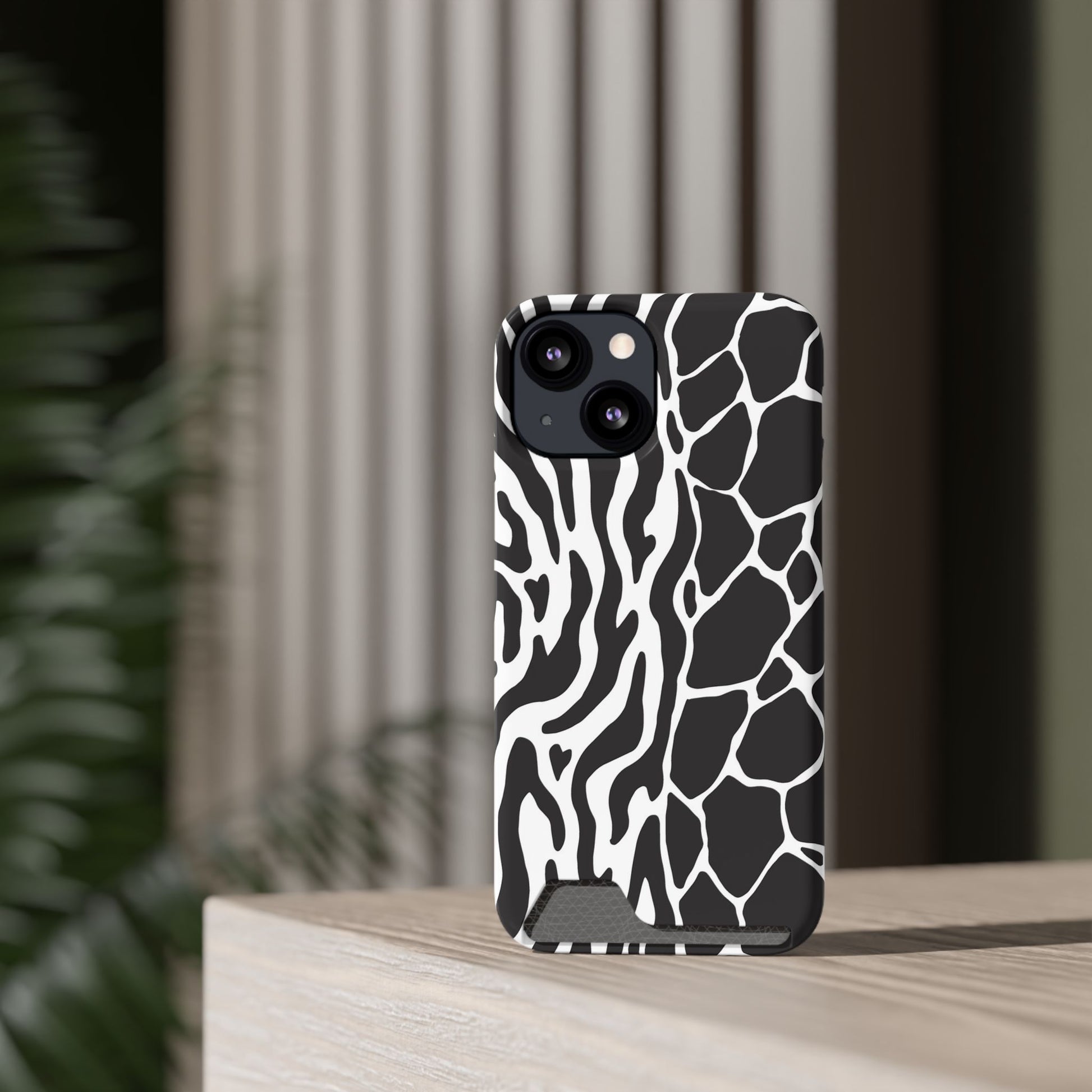 This sleek luxury case combines bold black-and-white animal print with refined minimalism for an instantly elevated look.