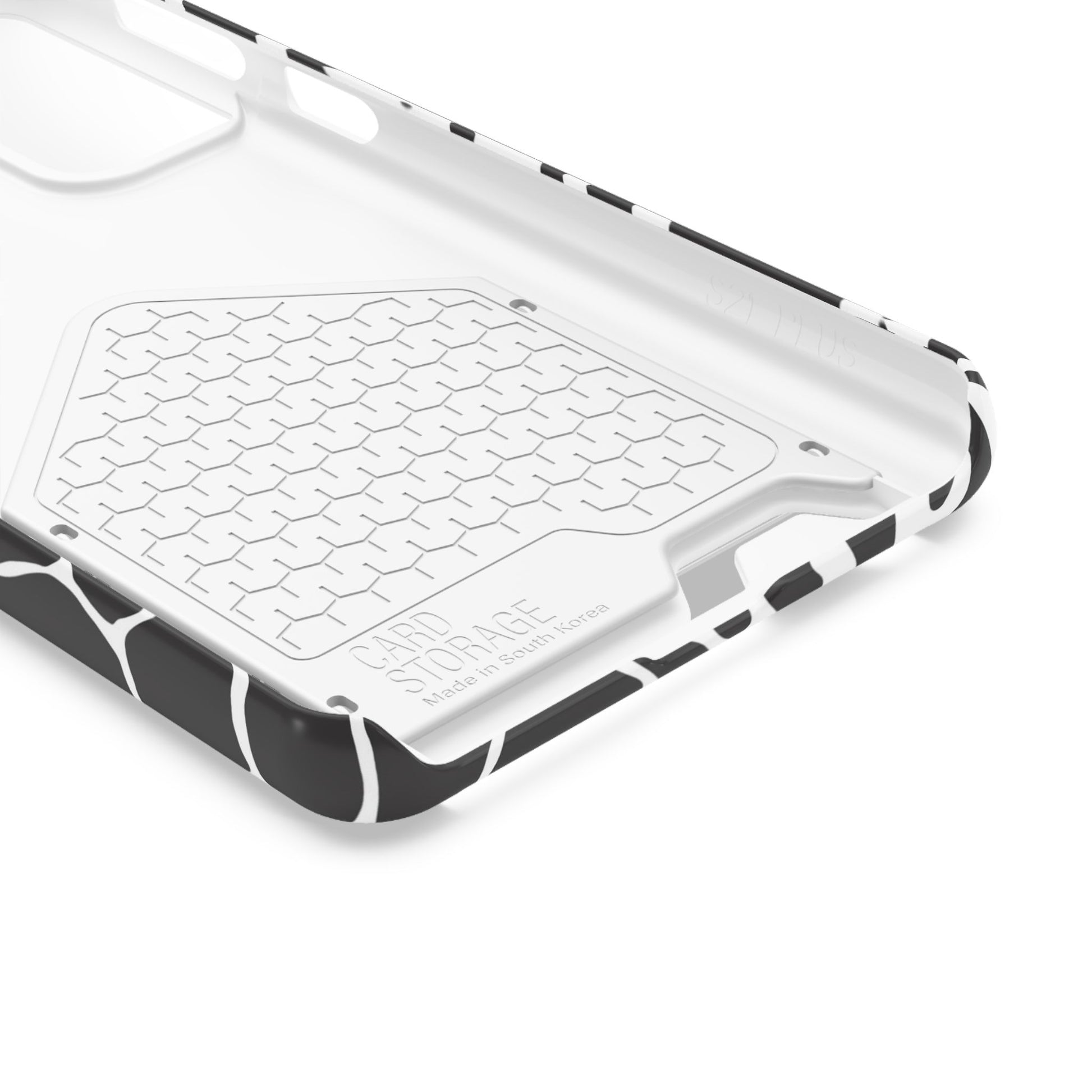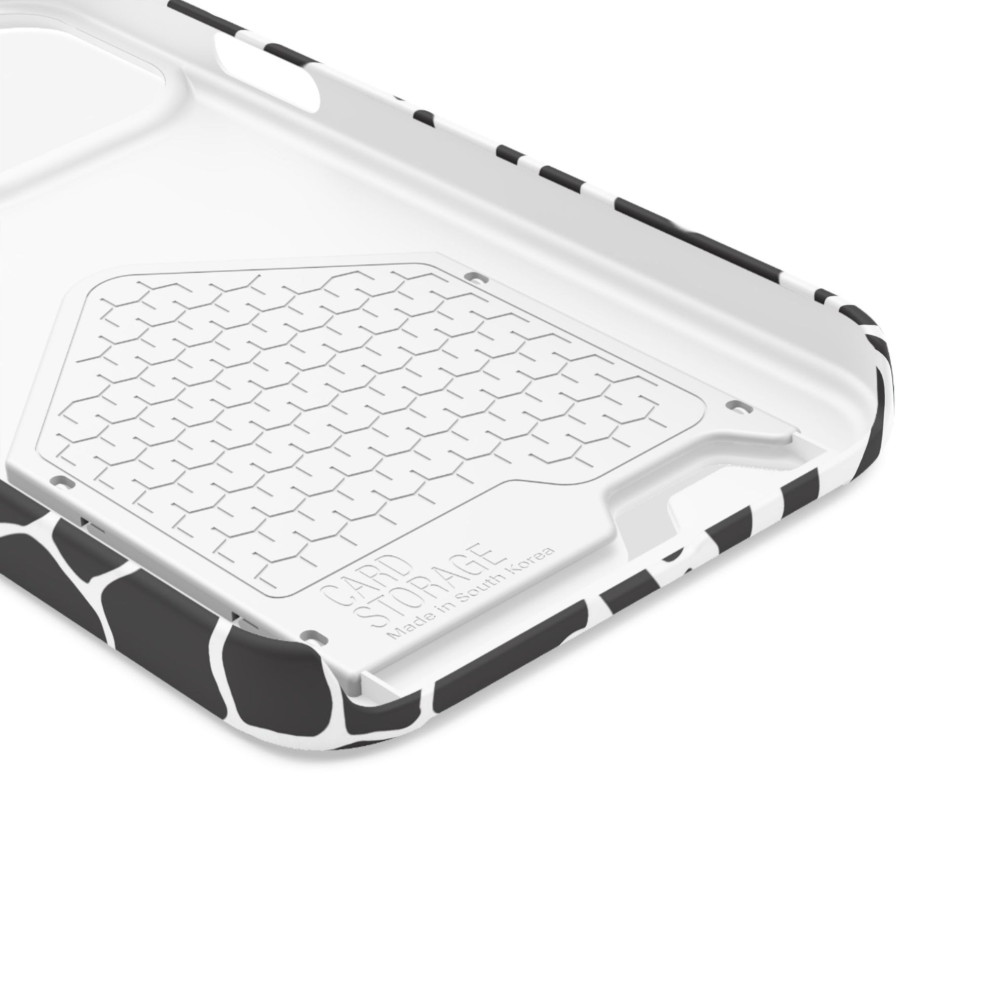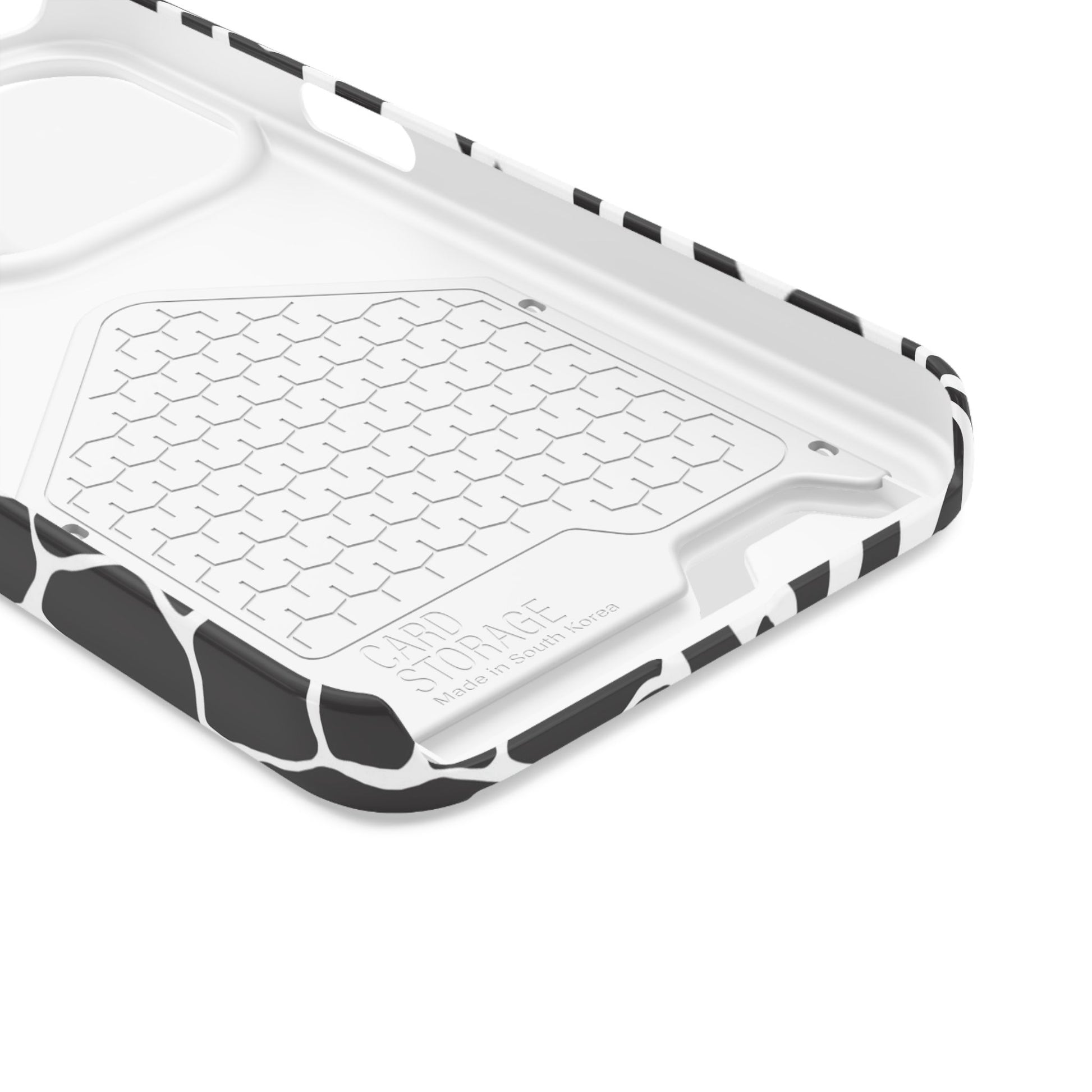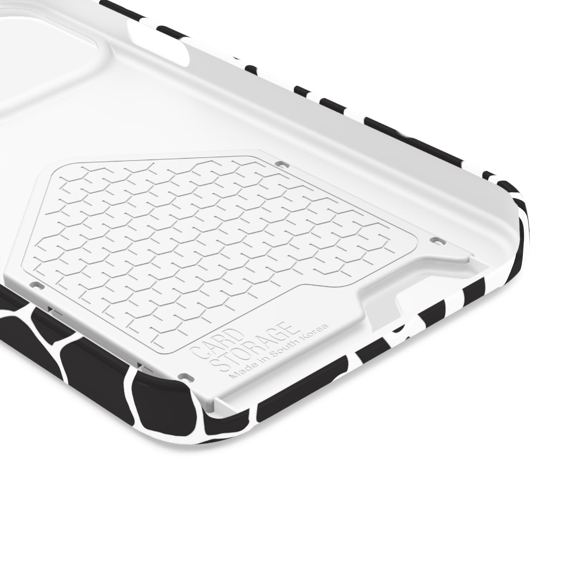 This sleek luxury case combines bold black-and-white animal print with refined minimalism for an instantly elevated look.