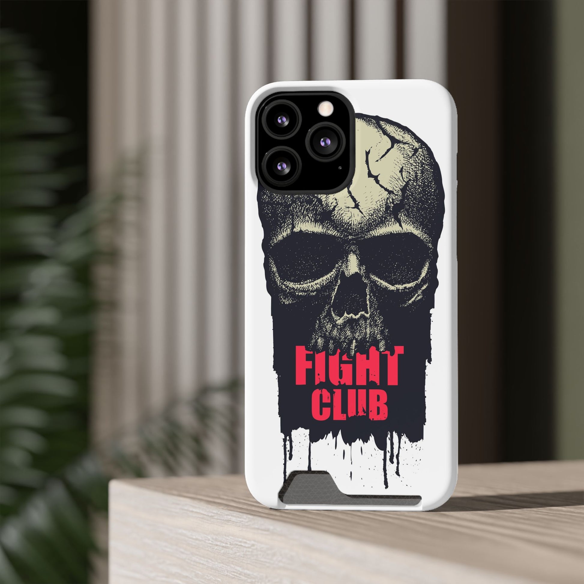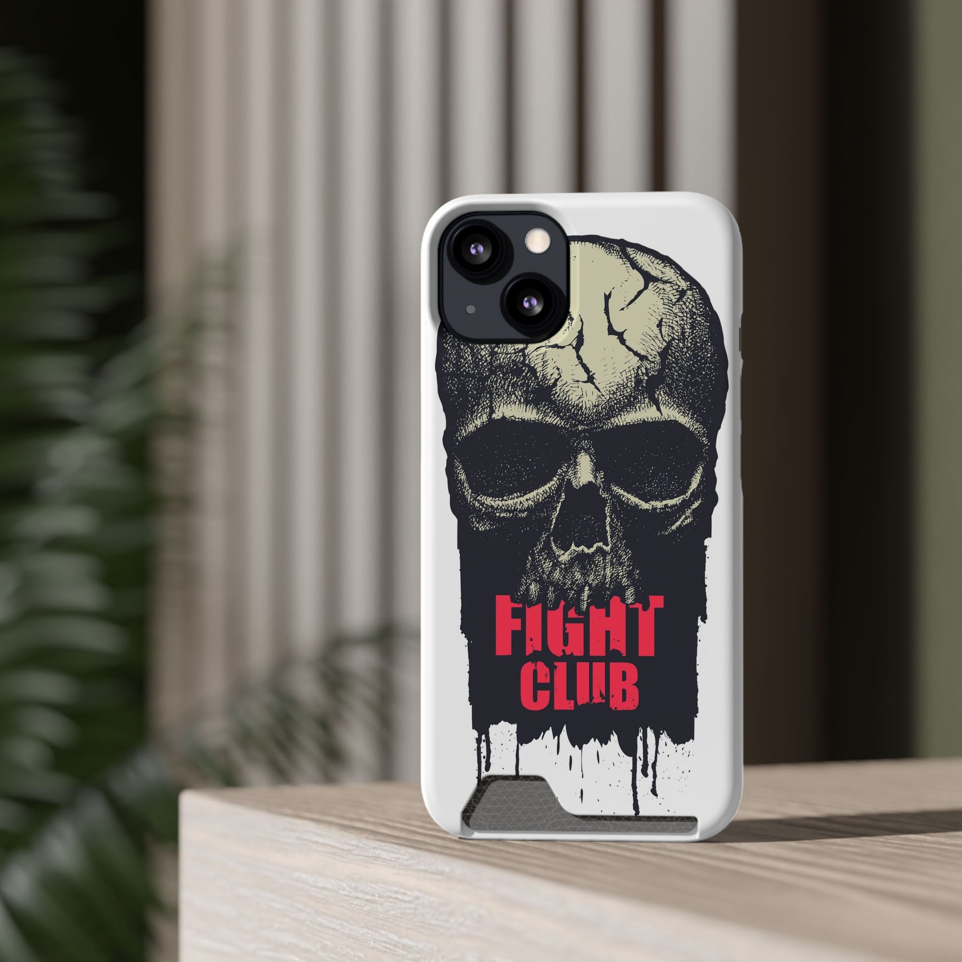 Fight Club Skull Phone Case with Card Holder — Bold Gothic Skull Design